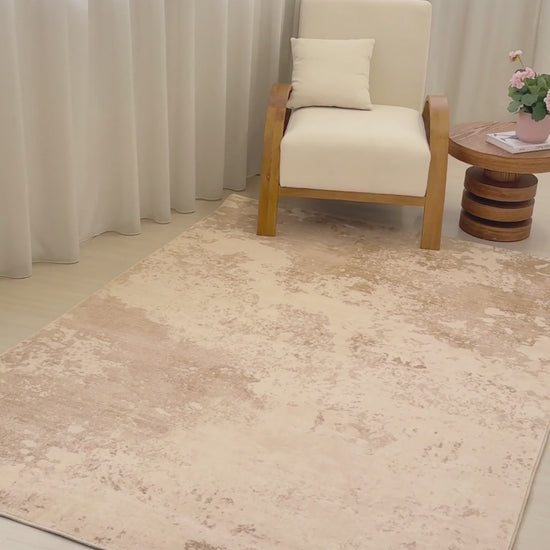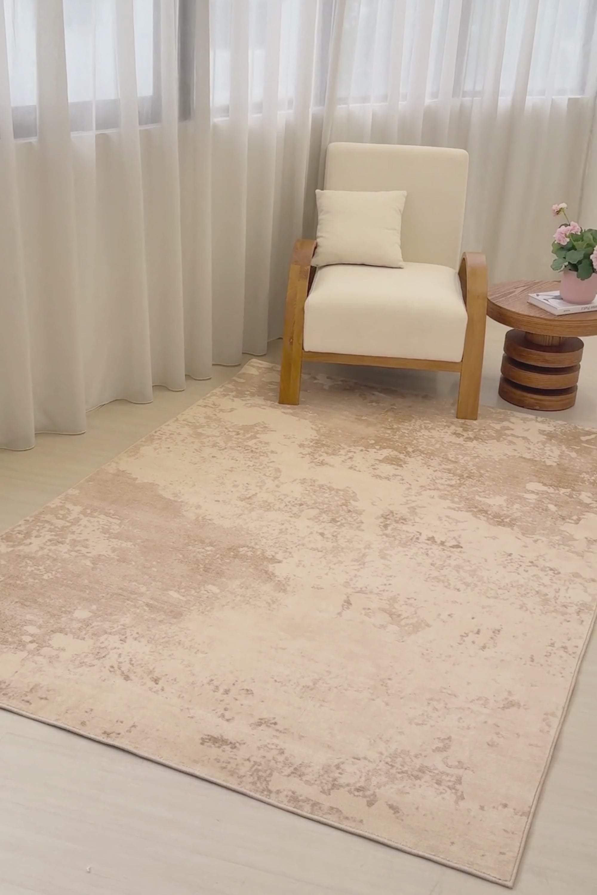 Sandstone Mist features a soft abstract texture in layered tones of beige, taupe, and cream with a minimalist design that adds warmth and subtle sophistication to any space.